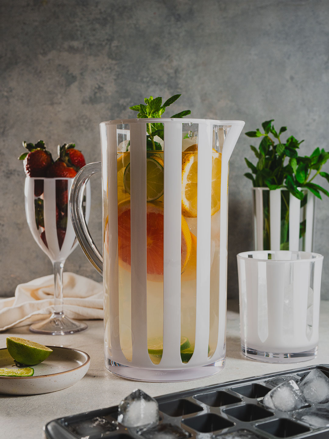 Set Jarra Acrílica Blanca Stoll 2.2 L + 4 Vasos Acrílicos 680 cc | Juego Irrompible para Bebidas Frías
