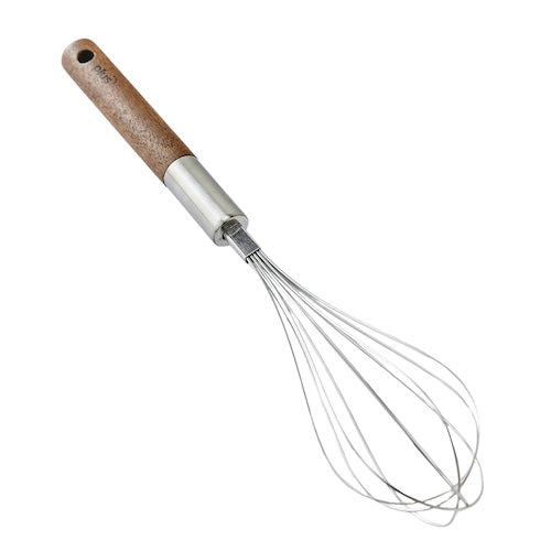 Batidor de acero inoxidable con mango de madera de acacia natural.