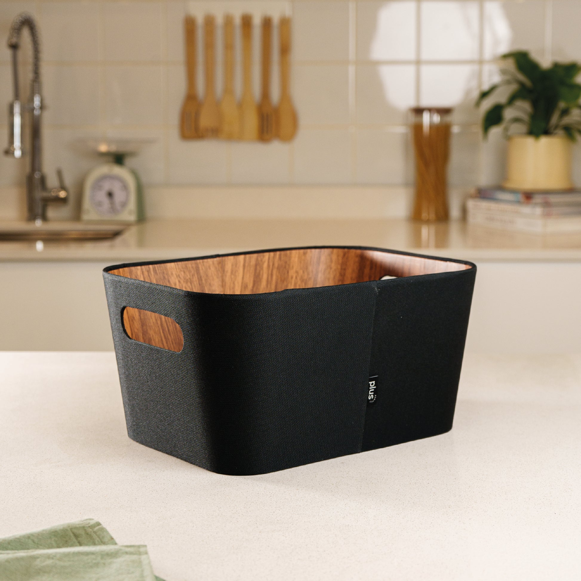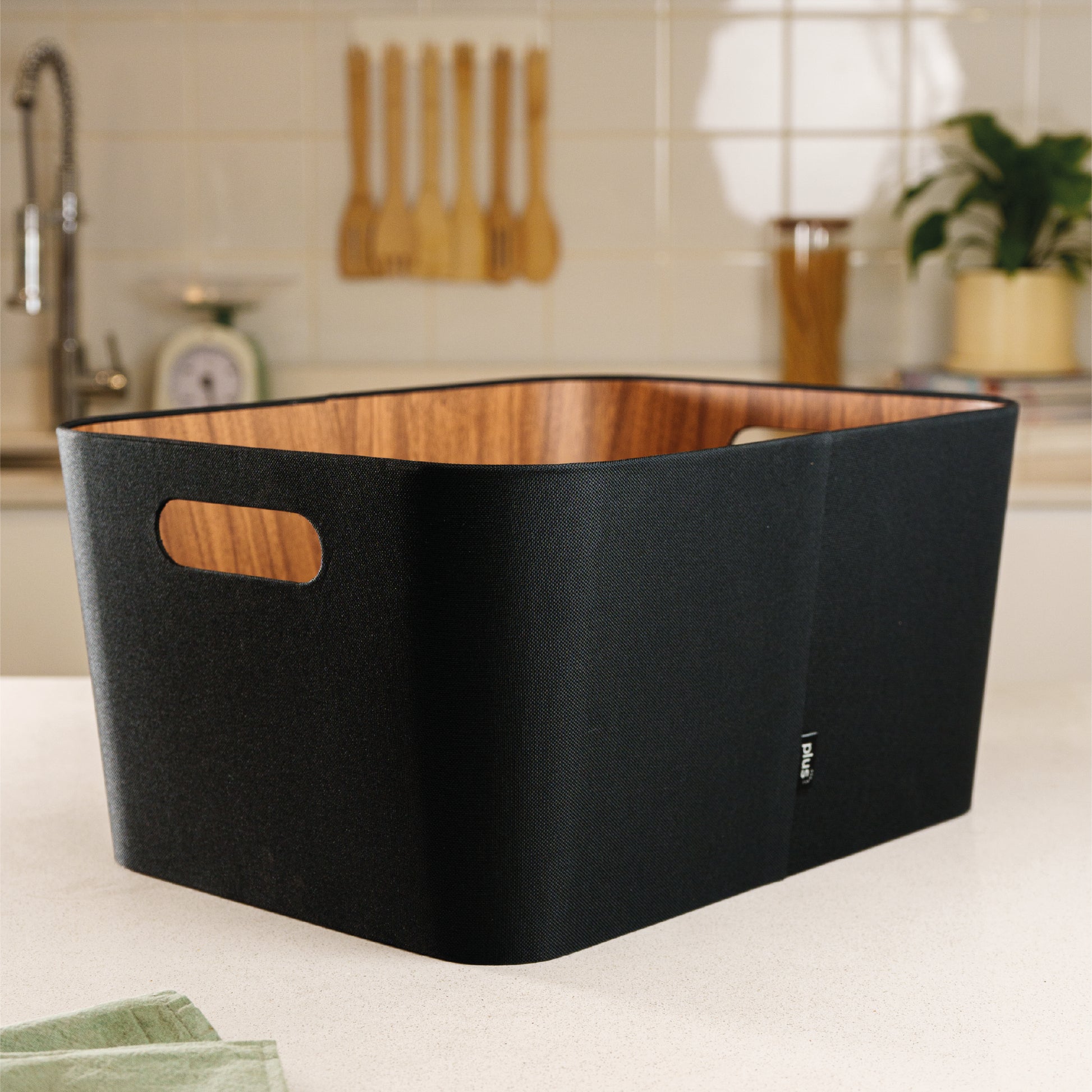 Este organizador multiuso en color negro combina funcionalidad y diseño elegante para mantener cualquier espacio ordenado. Su tamaño intermedio ofrece capacidad suficiente para objetos medianos sin ocupar demasiado espacio, adaptándose fácilmente a baños, dormitorios, livings, cocinas u oficinas.
