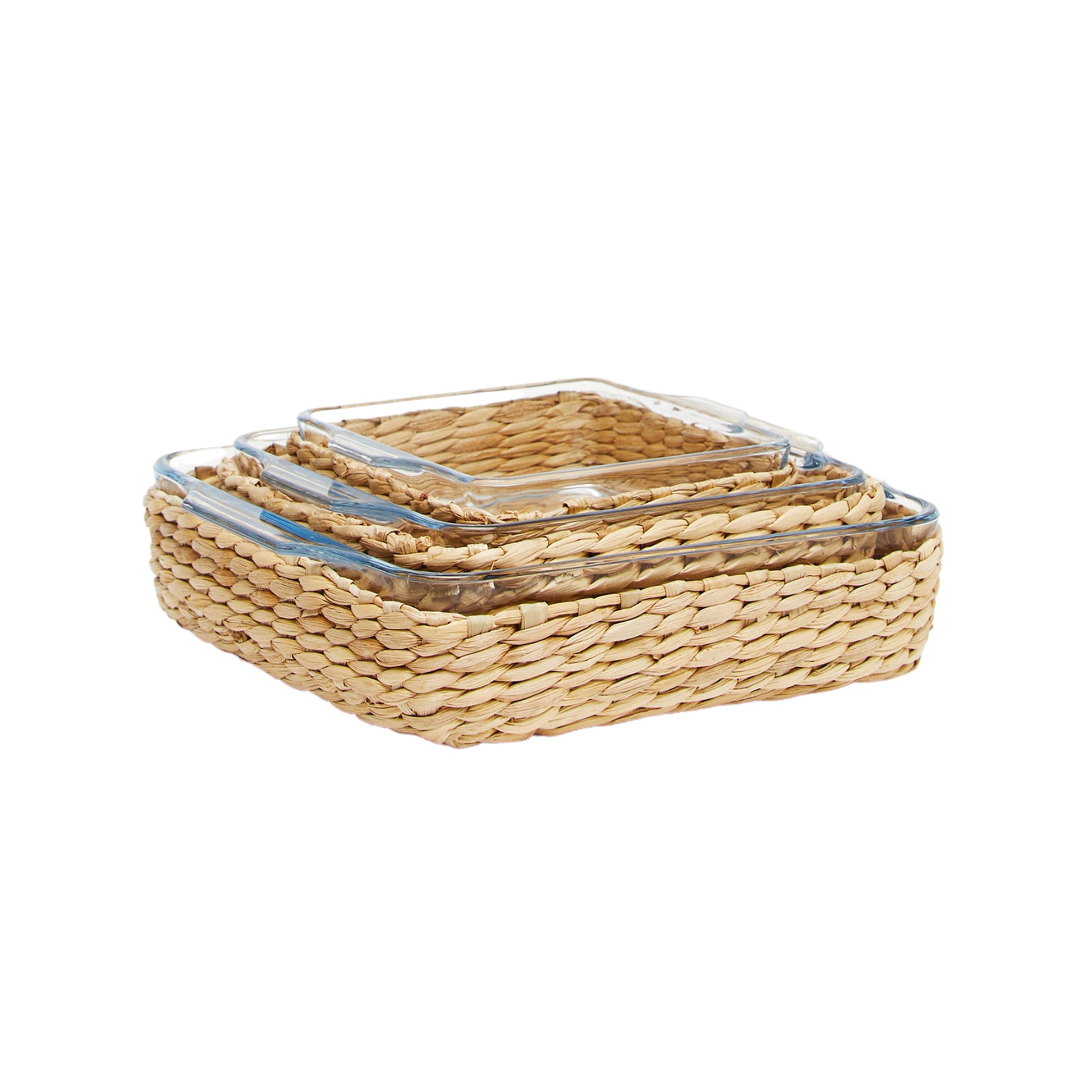 Set X3 Fuentes Cuadradas Con Canasta De Yute
