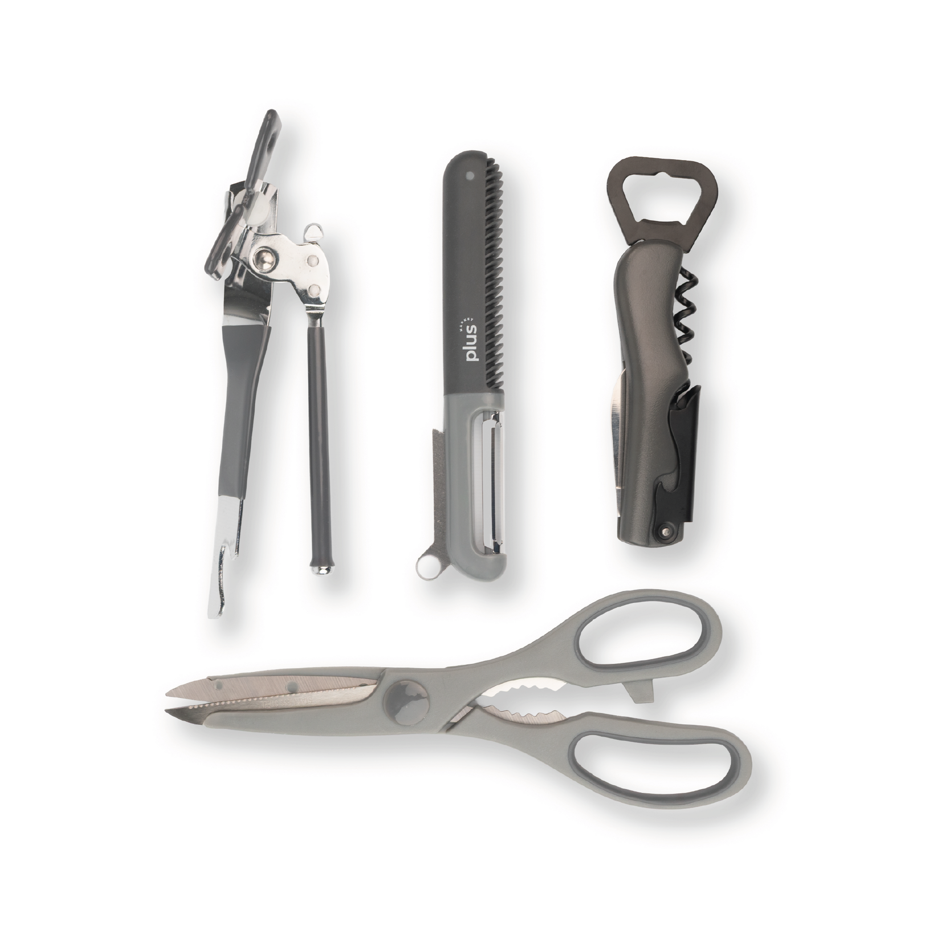 Set x4 Utensilios de Cocina de Silicona | Pelapapas + Destapador + Tijera Multiuso + Abrelatas Cromado